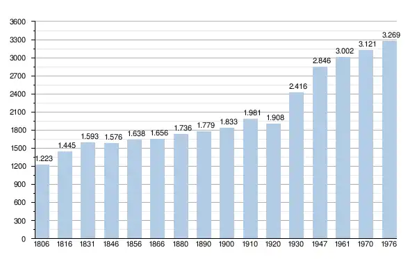 - Sources : INS, Rem. : 1831 jusqu'en 1970 = recensements, 1976 = nombre d'habitants au 31 décembre[2].