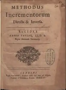 - (la) Methodus incrementorum directa sur Google Livres, Londres, 1715