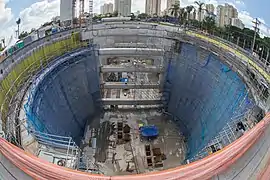 La station Brooklin est mise en service le , lors de l'ouverture du prolongement d'Adolfo Pinheiro à Brooklin, nouvelle station terminus[1]. La station est construite à ciel ouvert en cinq puits sécants de grand diamètre. Réalisée en béton, qui reste apparent, elle dispose d'un dôme en acier verre qui couvre l'accès principal[2].