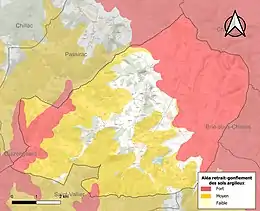 Le retrait-gonflement des sols argileux est susceptible d'engendrer des dommages importants aux bâtiments en cas d’alternance de périodes de sécheresse et de pluie. 79,4 % de la superficie communale est en aléa moyen ou fort (67,4 % au niveau départemental et 48,5 % au niveau national). Sur les 425 bâtiments dénombrés sur la commune en 2019, 211 sont en aléa moyen ou fort, soit 50 %, à comparer aux 81 % au niveau départemental et 54 % au niveau national. Une cartographie de l'exposition du territoire national au retrait gonflement des sols argileux est disponible sur le site du BRGM[30],[Carte 3].
