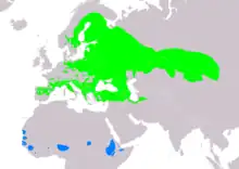 Il migre pour l'hiver vers le nord de l'Afrique subsaharienne, notamment au Sahel, du Sénégal à l'Éthiopie. Son aire d'hivernage exacte est cependant mal connue. Grand migrateur, il peut facilement parcourir plus de 7 000 km (en moyenne 6 000). Il quitte sa zone de reproduction à partir de la mi-juillet, jusqu'à la mi-septembre. Il est de retour au début avril, début juin au plus tard[7].
