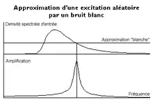 En toute rigueur, un bruit blanc ne peut exister car une densité spectrale identique pour toutes les fréquences conduirait à une variance, mesurée par l'aire sous la courbe, infinie (et donc une puissance infinie). Cette solution est néanmoins intéressante dans certains problèmes pratiques car, bien qu'il ne puisse exister, on montre que la réponse à un bruit blanc d'un système amorti reste finie. Le remplacement d'une excitation quelconque par un bruit blanc fournit donc, en simplifiant considérablement les calculs, une approximation d'autant meilleure que l'amortissement du système est plus faible.