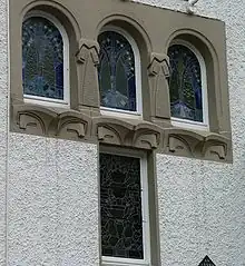 - à partir de 1910 : colonie de fonctionnaires "Am Grafenbusch" (de) de la Gutehoffnungshütte à Oberhausen (en quatre phases de construction, éléments décoratifs en terre cuite sur les maisons des cadres supérieurs de John Martens (de))[52]
