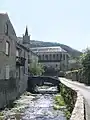 Le village lui-même est situé au confluent du Dourdou et du ruisseau de Sanctus, qui sont franchis par un pont de confluent.
