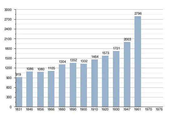 Graphe de l'évolution de la population de la commune. Les données ci-après intègrent les anciennes communes dans les données avant la fusion de 1971.