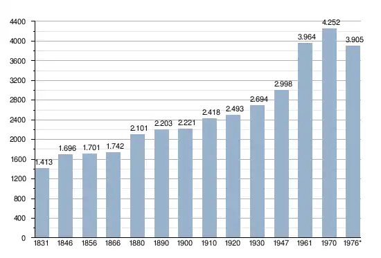 - Sources : INS, Rem. : 1831 jusqu'en 1970 = recensements, 1976= nombre d'habitants au 31 décembre.
