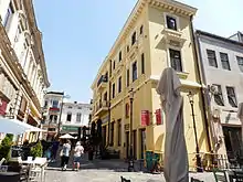 La place d'Espagne, avec le buste de Cervantes et des immeubles néo-roumains et bauhaus des années 1920-1930.