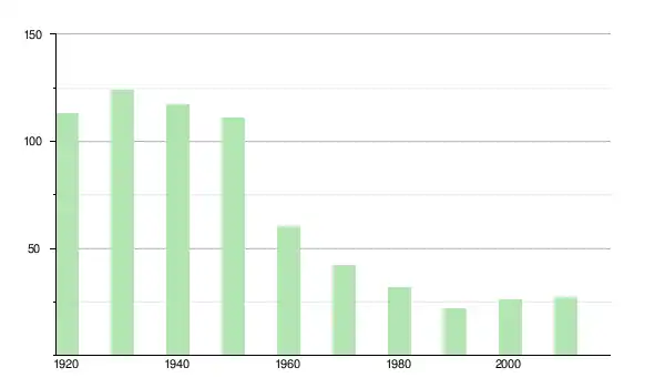 | 1940 | 117 | ▼ −5,65 % | |
