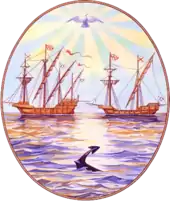 D'azur à deux voiliers à l'ancre sur des ondes d'eau, le tout au naturel, une branche d'ancre de sable issant des eaux. En chef une colombe du Saint-Esprit renversée d'argent rayonnante du même.