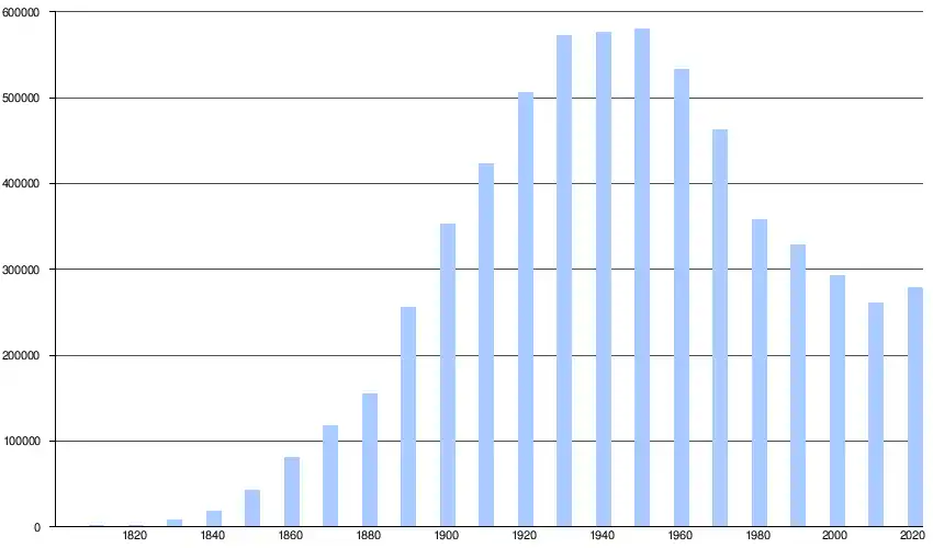| 1960 | 532 759 | ▼ −8,17 % | |