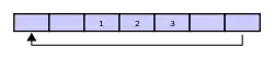 Un buffer circulaire est vide au départ et a une longueur prédéterminée. Par exemple, un buffer de sept éléments :