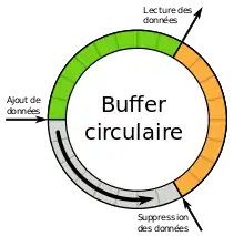 Un buffer circulaire est une structure de données utilisant un buffer de taille fixe et dont le début et la fin sont considérés comme connectés. Les buffers circulaires sont souvent utilisés pour gérer des flux de données ou pour implémenter un comportement de type FIFO.