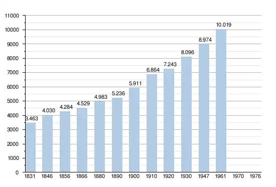 - Source : DGS - Remarque: 1831 jusqu'à 1981=recensement; depuis 1990=nombre d'habitants chaque 1er janvier[6]
