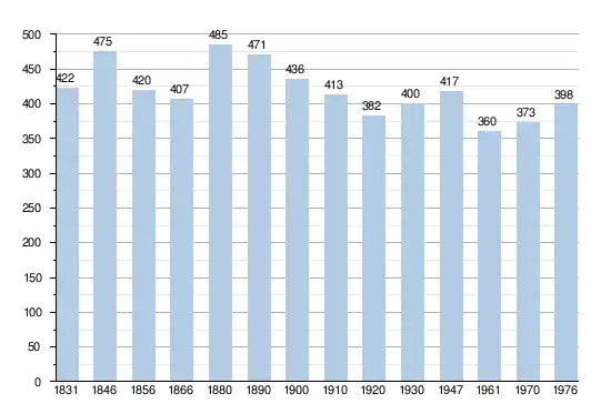 - Sources : INS, Rem. : 1831 jusqu'en 1970 = recensements, 1976 = nombre d'habitants au 31 décembre[2].