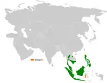 Il réside en Thaïlande, au Cambodge, sur l'île de Bornéo et aux Philippines.