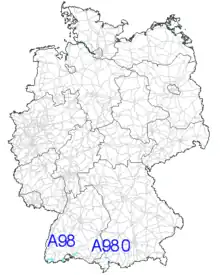 L'A98 devait à l'origine relier l'A5 à hauteur de Weil-am-Rhein à l'A8 à hauteur de Irschenberg. Plus de la moitié de la route avait été projetée mais par la suite, fut abandonnée. En Allgäu, vers Kempten, un tronçon avait déjà été construit. Ce dernier a été nommé A980.
