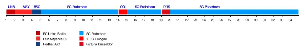 | Cologne | 13 | 17 | 14 | 15 | 16 | 17 | 17 | 15 | 16 | 17 | 17 | 17 | 17 | 18 | 17 | 15 | 15 | 13 | 14 | 14 | 13 | 14 | 13 | 11 | 10 | 10 | 10 | 11 | 12 | 12 | 12 | 13 | 14 | 14 | 2 | 9 | |
