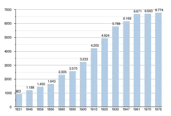 - Sources : INS, Rem. : 1831 jusqu'en 1970 = recensements, 1976 = nombre d'habitants au 31 décembre[2].
