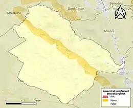 Le retrait-gonflement des sols argileux est susceptible d'engendrer des dommages importants aux bâtiments en cas d’alternance de périodes de sécheresse et de pluie[34]. 10,3 % de la superficie communale est en aléa moyen ou fort (59 % au niveau départemental et 48,5 % au niveau national)[Carte 3]. Depuis le , en application de la loi ELAN, différentes contraintes s'imposent aux vendeurs, maîtres d'ouvrages ou constructeurs de biens situés dans une zone classée en aléa moyen ou fort[Note 5],[35].