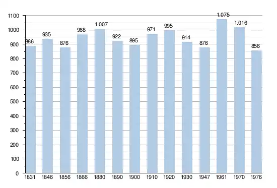 - Sources : INS, Rem. : 1831 jusqu'en 1970 = recensements, 1976 = nombre d'habitants au 31 décembre.