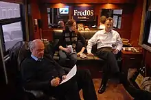 Les candidats peuvent donner des entrevues à la presse ou se détendre dans leur autobus. En 1972, la campagne de Edmund Muskie à l'élection présidentielle est entachée lorsqu'un journaliste écrit que Jane Muskie, la femme du candidat, « a essayé d'égayer un autobus de campagne avec la suggestion désinvolte que tout le monde échange des histoires risquées »[7].