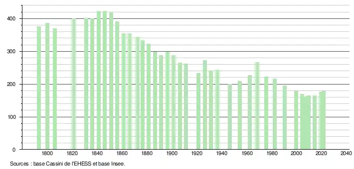 179 hab. (2021 en augmentation de 6,55 % par rapport à 2015)