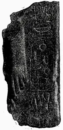 Le texte égyptien est le nom de Sa-Rê d'Osorkon, et le texte phénicien est une dédicace par Élibaal, roi de Byblos.