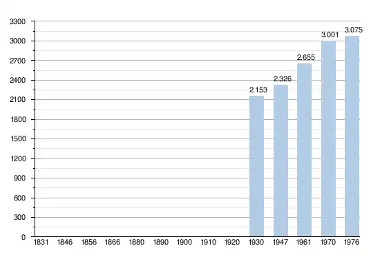 Les chiffres des années 1831 à 1970 tiennent compte des chiffres des anciennes communes fusionnées.