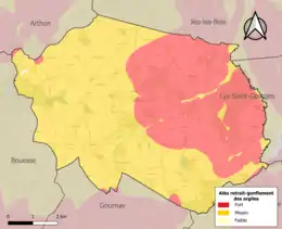 Le retrait-gonflement des sols argileux est susceptible d'engendrer des dommages importants aux bâtiments en cas d’alternance de périodes de sécheresse et de pluie. 99,9 % de la superficie communale est en aléa moyen ou fort (84,7 % au niveau départemental et 48,5 % au niveau national). Sur les 127 bâtiments dénombrés sur la commune en 2019, 127 sont en aléa moyen ou fort, soit 100 %, à comparer aux 86 % au niveau départemental et 54 % au niveau national. Une cartographie de l'exposition du territoire national au retrait gonflement des sols argileux est disponible sur le site du BRGM[22],[23].
