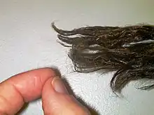 Les fibres, à base de protéines quinone et de kératine, ont une cuticule extérieure riche en tyrosine, un acide aminé particulier très adhésif même sous l'eau. Elles s'associent avec des ions ferriques, ce qui donne un complexe très résistant à l'usure et une grande capacité d'extension[6].