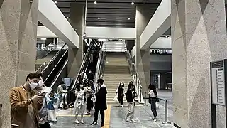 La station est accessible, au niveau du sol, par des escaliers et des escaliers mécaniques et un ascenseur pour les personnes en situation de handicap. C'est au premier niveau que l'on trouve les bornes pour l'achat de titres de transports et les Portillon d'accès pour la validation des billets. Au deuxième niveau on accède deux quais latéraux par les mêmes moyens que pour l'accès au premier niveau[3].