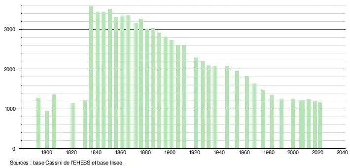 1 162 hab. (2021 en diminution de 5,45 % par rapport à 2015)
