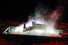 - Tableau du cirque sur la Valse n°2 de Dmitri Chostakovitch et une valse de Sergueï Prokofiev tirée du ballet Cendrillon, plus de 200 artistes professionnels et élèves d'écoles du cirque évoluent sur six pistes de cirque avant qu'un grand chapiteau se dresse au centre du stade puis étant aspiré par le sol[3].