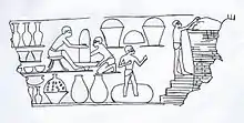 - (en) Leonhard H. Lesko, « Egyptian Wine Production During the New Kingdom », The Origins and Ancient History of Wine, Amsterdam, , p. 221 et (en) Leonhard H. Lesko, King Tut’s Wine Cellar, Berkeley, , p. 49.