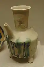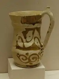 La production de céramiques à glaçure ne s'interrompt pas brusquement avec l'arrivée de l'Islam, mais au contraire se poursuit durant un certain temps. Ainsi, on connaît des jarres et des amphores produites vraisemblablement après la conquête, mais qui conservent les anciens modèles.