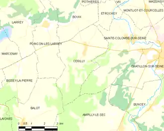 Cérilly est une commune française située dans le canton de Châtillon-sur-Seine du département de la Côte-d'Or, en région Bourgogne-Franche-Comté.