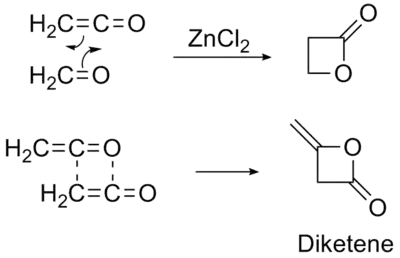 La seconde utilisation du cétène est la production du dicétène par dimérisation contrôlée[3].