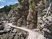 À l'exception des 12 km les plus méridionaux de la côte, les falaises monténégrines diffèrent considérablement de la basse côte albanaise en raison de leur structure géologiquement complexe.