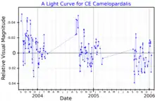 - (en) « VSX : Detail for CE Cam », sur The International Variable Star Index, AAVSO (consulté le )