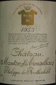 - Une hypothèse considérée comme absurde déjà dans les années 1980. Alexis Lichine, op. cit., p. 360, commente : « À Bordeaux, un 100 % cabernet sauvignon serait une anomalie. 75 % - comme le château Mouton Rothschild - étant déjà considéré comme un pourcentage très élevé ».