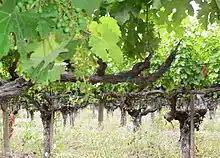 | Mode de taille | taille longue (Guyot simple ou arcure) et possible taille courte (cordon) dans les nouveaux vignobles |