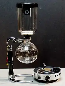 Ce type de cafetière est également connu sous le nom de cafetière Cona, marque populaire en Europe après 1920. Le Bauhaus a produit une interprétation de cet appareil sous la forme de la cafetière Sintrax (de) de Gerhard Marcks, en 1925[3],[4].