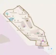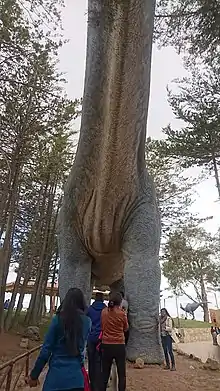 La visite du parc s'effectue en gravissant un escalier, qui mènent au sommet d'une colline. Les murs de l'escalier retracent une ligne de temps qui se termine à l'époque du crétacé supérieur. Arrivé au sommet de la colline le point de vue sur la falaise met à l'évidence 12 000 traces de 294 espèces de dinosaures qui vivaient là. Dans les fossés, entre les arbres et dans les positions d'action, les maquettes naturelles des dinosaures sont situées sur la colline, parmi lesquelles les promeneurs voyagent à travers le temps accompagnés de guides spécialisés[4]. Les maquettes des sauriens représentés sont celles du ptérosaure , de l' iguanodon, du mosasaurus, du carnotaurinae , du tyrannosaure , et du hadrosauridé, le sentier du parc passe sous les jambes d'un titanosauria.