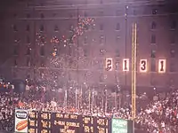 Le 6 septembre, 1995 Ripken a battu le record de Lou Gehrig en jouant son 2131e match consécutif. Le Président des États-Unis Bill Clinton était là. À la fin de la 5e manche, quand le match est devenu officiel, Ripken a reçu une ovation des fans qui a duré 22 minutes.