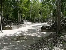 Le sacbé 2 fait 70 m de long. Il a été localisé également dans la zone urbaine centrale du site[9]. Le sacbé 2 est construit en terre battue et a été découvert lors de fouilles archéologiques dans une carrière voisine[74]. Cette chaussée peut avoir été construite pour le transport des pierres de la carrière afin de construire les structures 1 et 3[74].