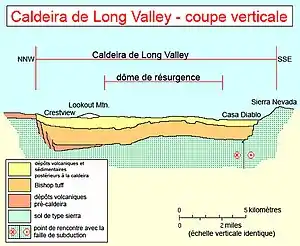 La caldeira de Long Valley est une dépression située en Californie orientale et adjacente à Mammoth Mountain. La vallée constitue l'une des plus vastes caldeiras sur Terre, avec environ 32 km de long dans le sens est-ouest pour 17 km de large du nord au sud. L'élévation du sol de la caldeira est de 2 000 m à l'est et de 2 600 m à l'ouest. Les murs de la caldeira atteignent une altitude de 3 000 m à 3 500 m, excepté à l'est, où ils ne s'élèvent graduellement que de 150 m à 2 300 m.