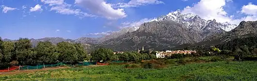 Vue du village de Calenzana, dominé par le Monte Grosso. | |