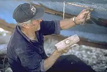 Ceci se faisait traditionnellement à l'aide de filasse (ou étoupe) appliquée en force, par boucles successives, par le calfat, en frappant avec un maillet sur des outils spécifiques (ciseau, fer à calfat, etc.), filasse en général protégée ensuite par un enduit fait de brai bitumineux ou de goudron, parfois de mastic de vitrier, lui-même protégé par un entoilage sous un doublage de cuivre[2]. Ce travail était long et pénible mais l'étanchéité de la coque en dépendait. Le bordé, malmené par les mouvements de la mer et les contraintes du gréement, avait en effet tendance à « jouer » et à laisser passer de l'eau.