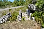 - Dolmen de Peyre Gagès : l'orthostate de droite s'est effritée entraînant l'effondrement de la table.