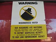 Des organisations de surveillance de voisinage par quartier de type « Voisins Vigilants » qui permettent au voisinage de s'organiser afin de surveiller mutuellement leurs habitations sont des outils de prévention des crimes efficaces[17] mais sont actives surtout dans les pays anglo-saxons.